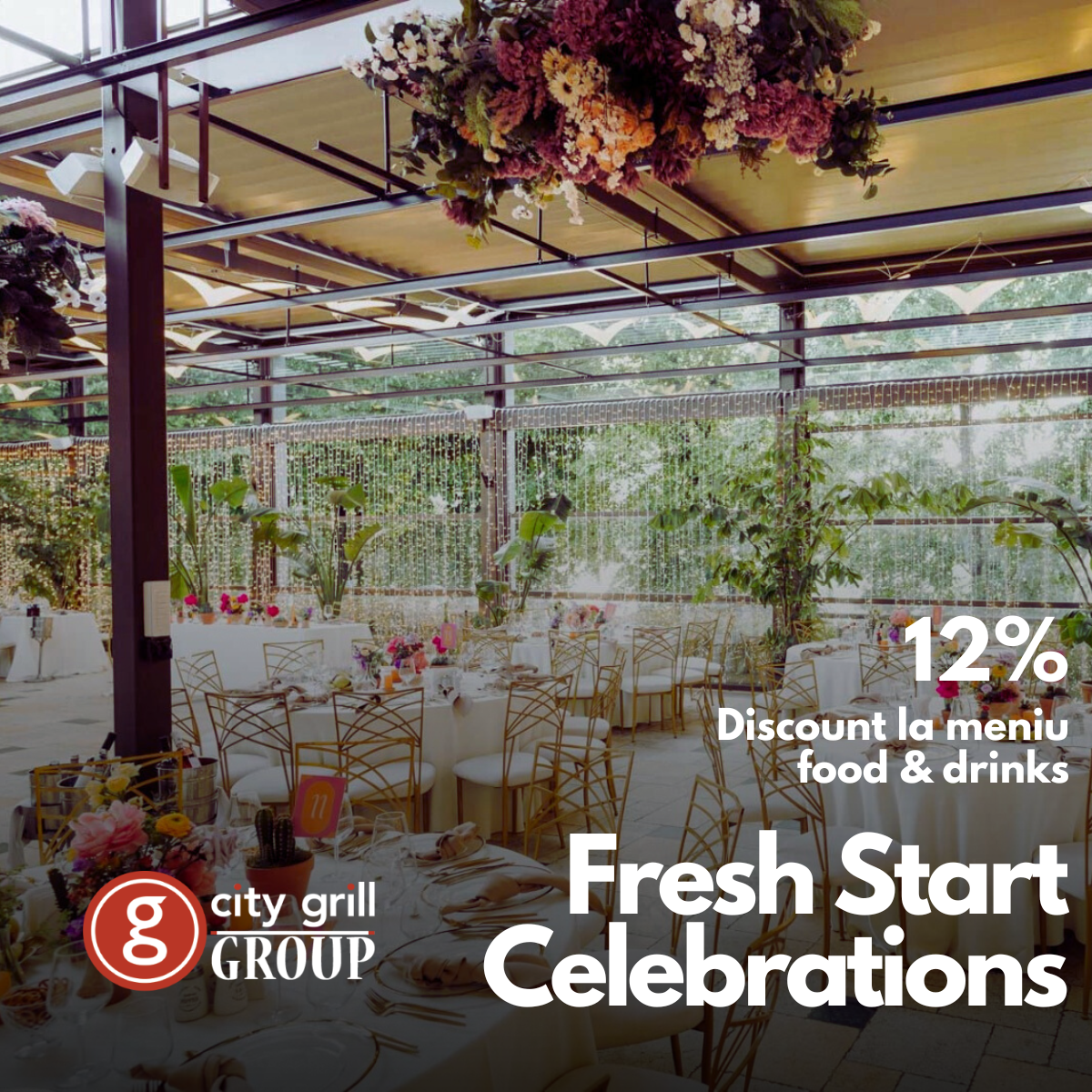 - Discount 12% la meniurile de eveniment (meniu + pachet de băuturi)